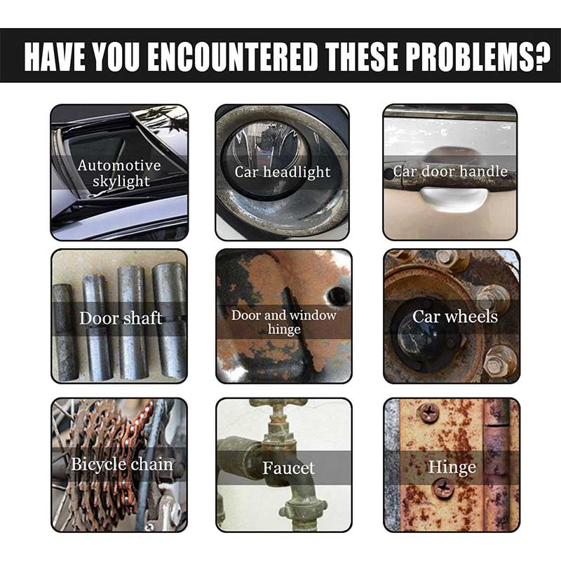 Don’t worry! Our "Car rust removal spray" will help you solve the problem easily. Great for rust from tools, metals, cast iron, car parts, etc.